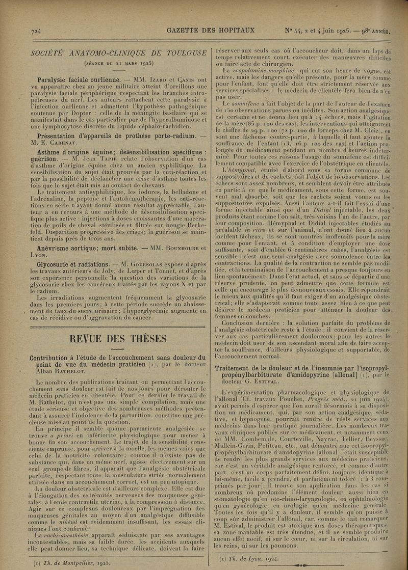 1925, tome 98e année. -
