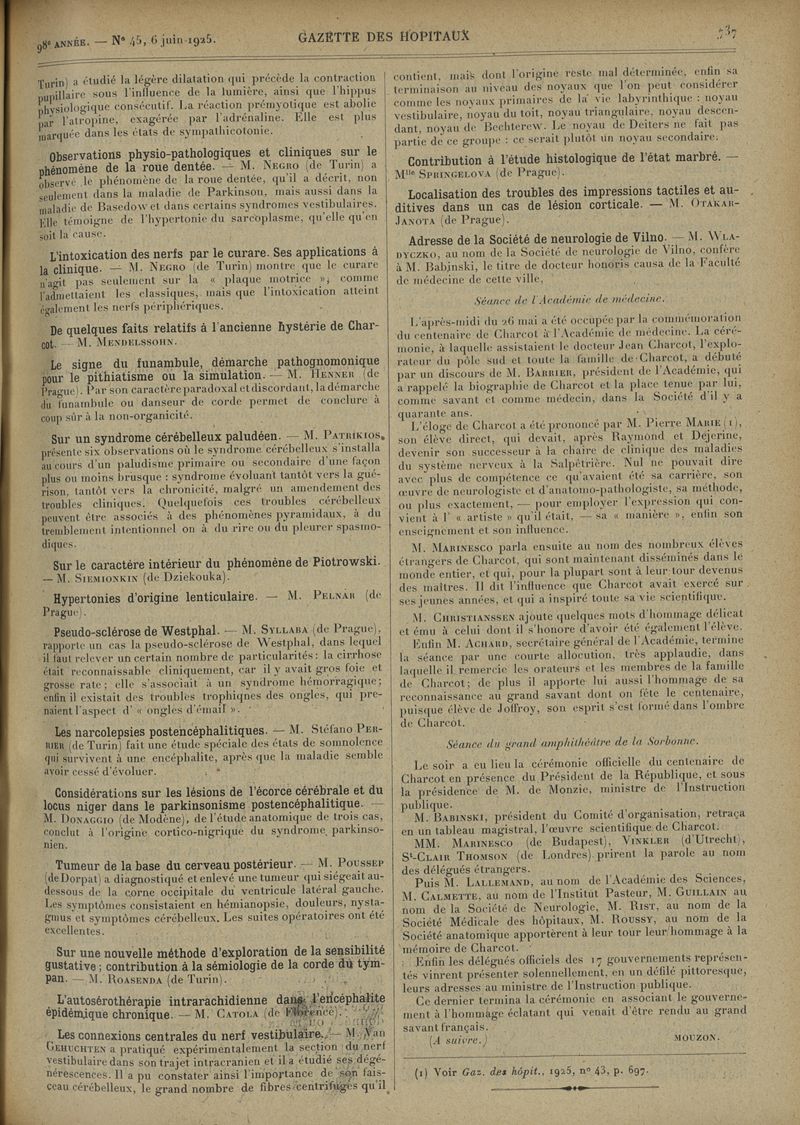 1925, tome 98e année. -