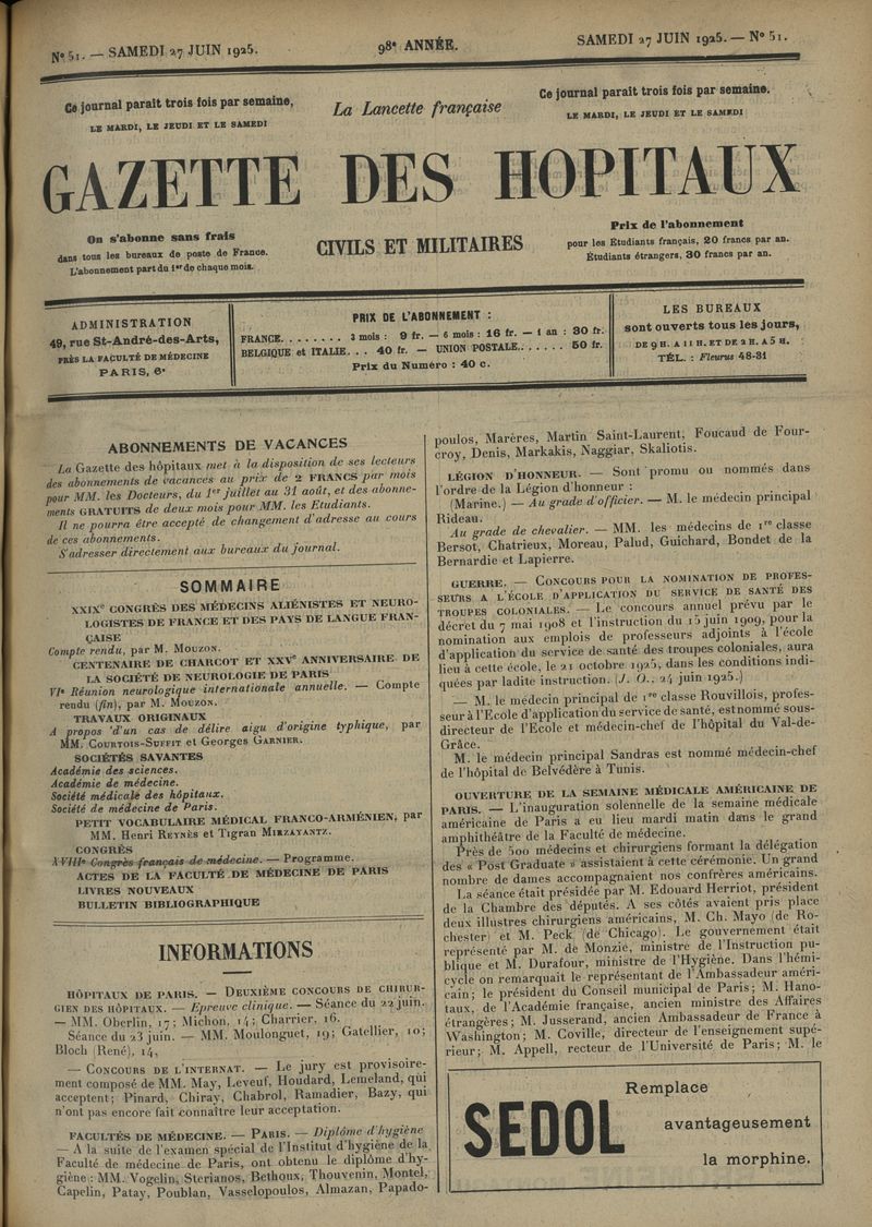 1925, tome 98e année. -