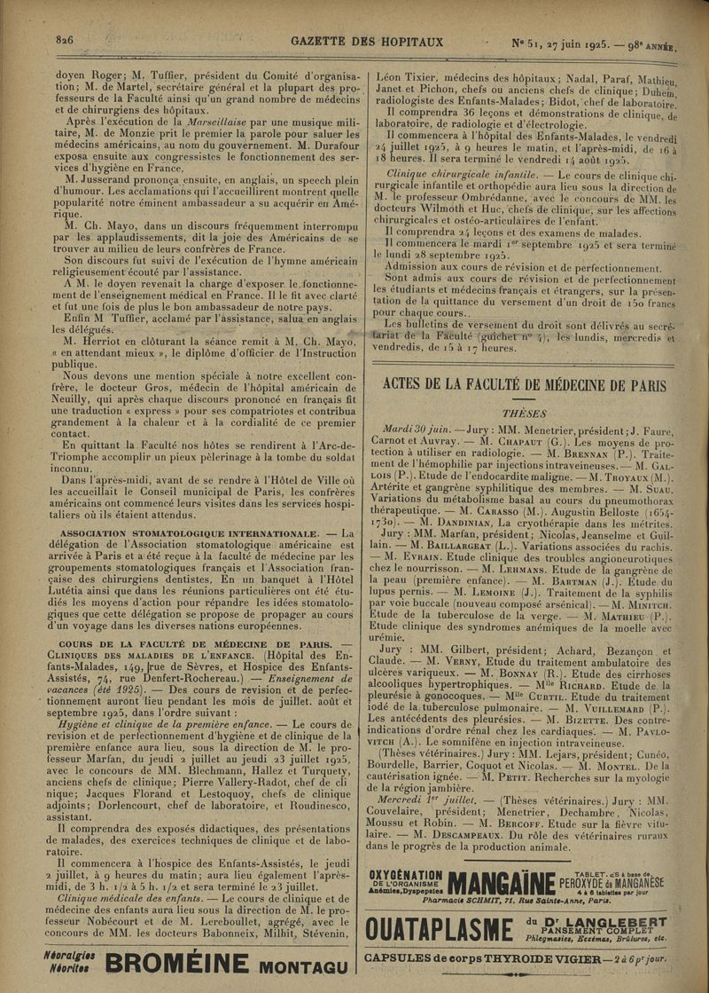 1925, tome 98e année. -