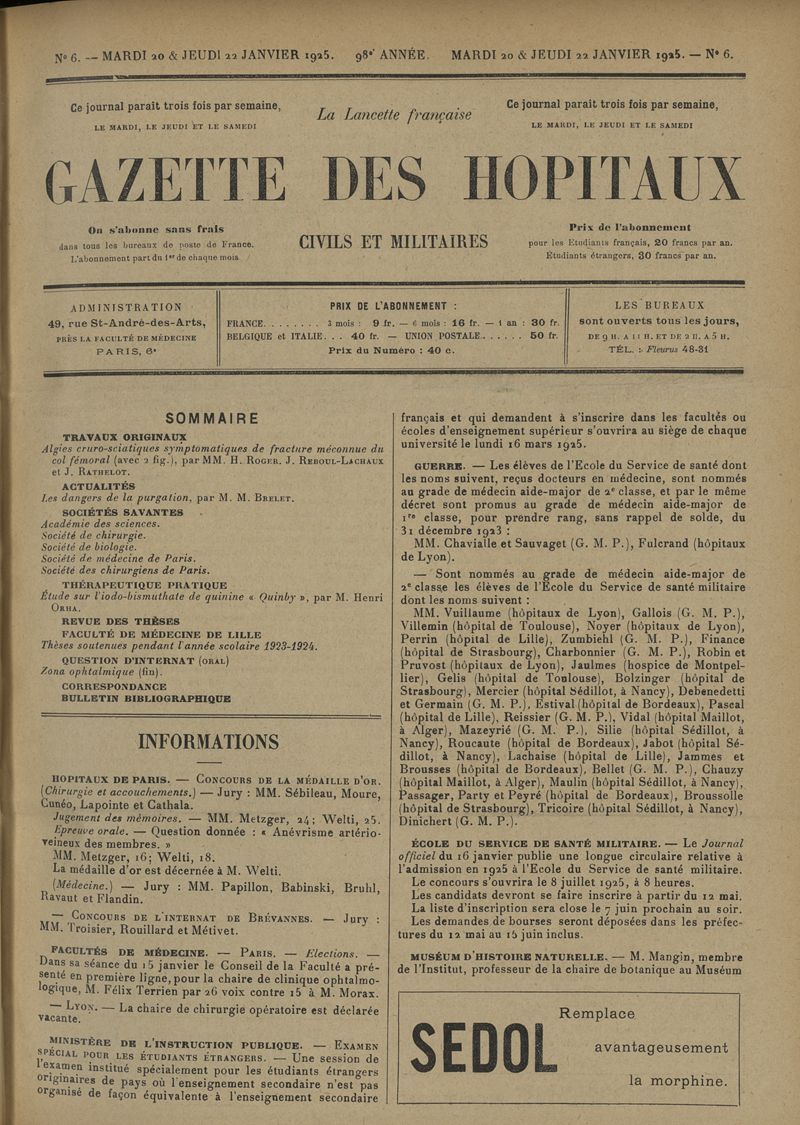 1925, tome 98e année. -