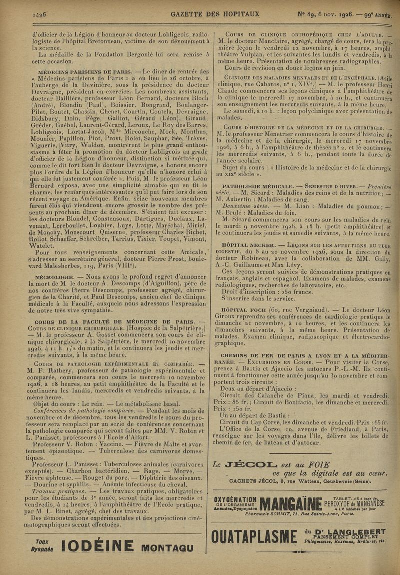 1926, tome 99e année. -