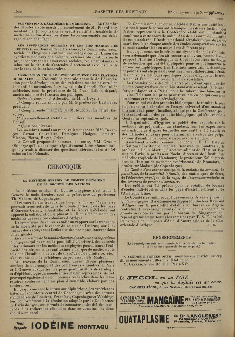 1926, tome 99e année. -