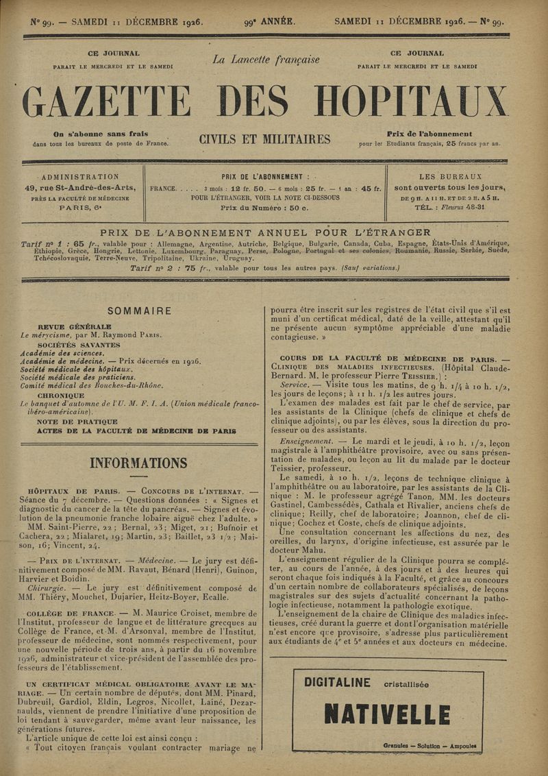 1926, tome 99e année. -