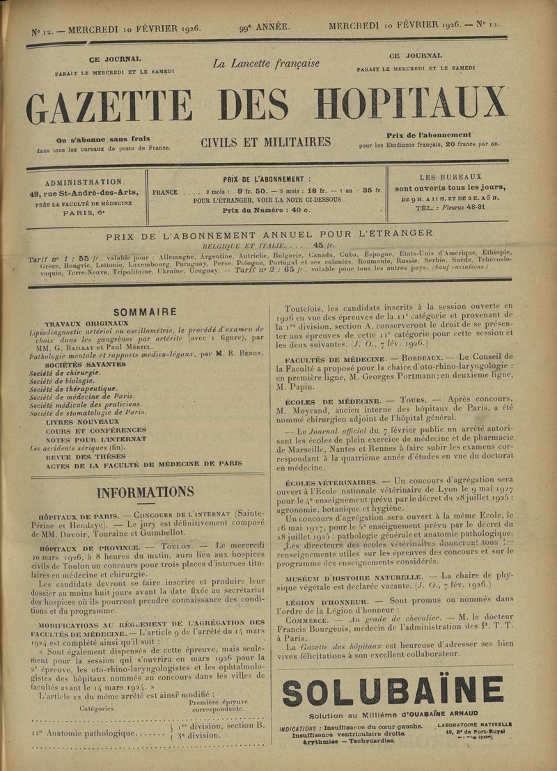 1926, tome 99e année. -