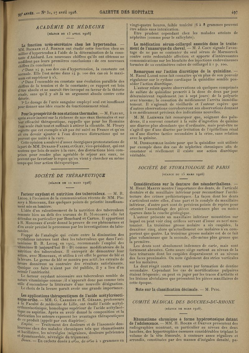 1926, tome 99e année. -