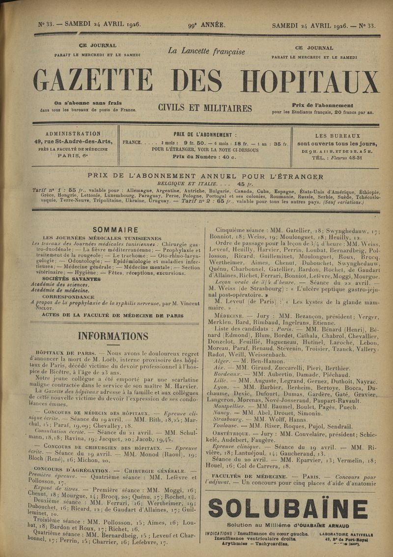 1926, tome 99e année. -