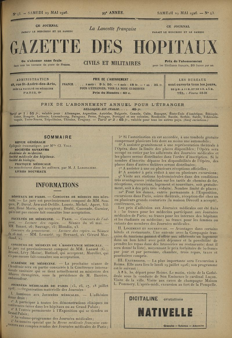 1926, tome 99e année. -