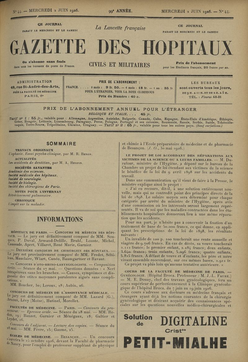 1926, tome 99e année. -