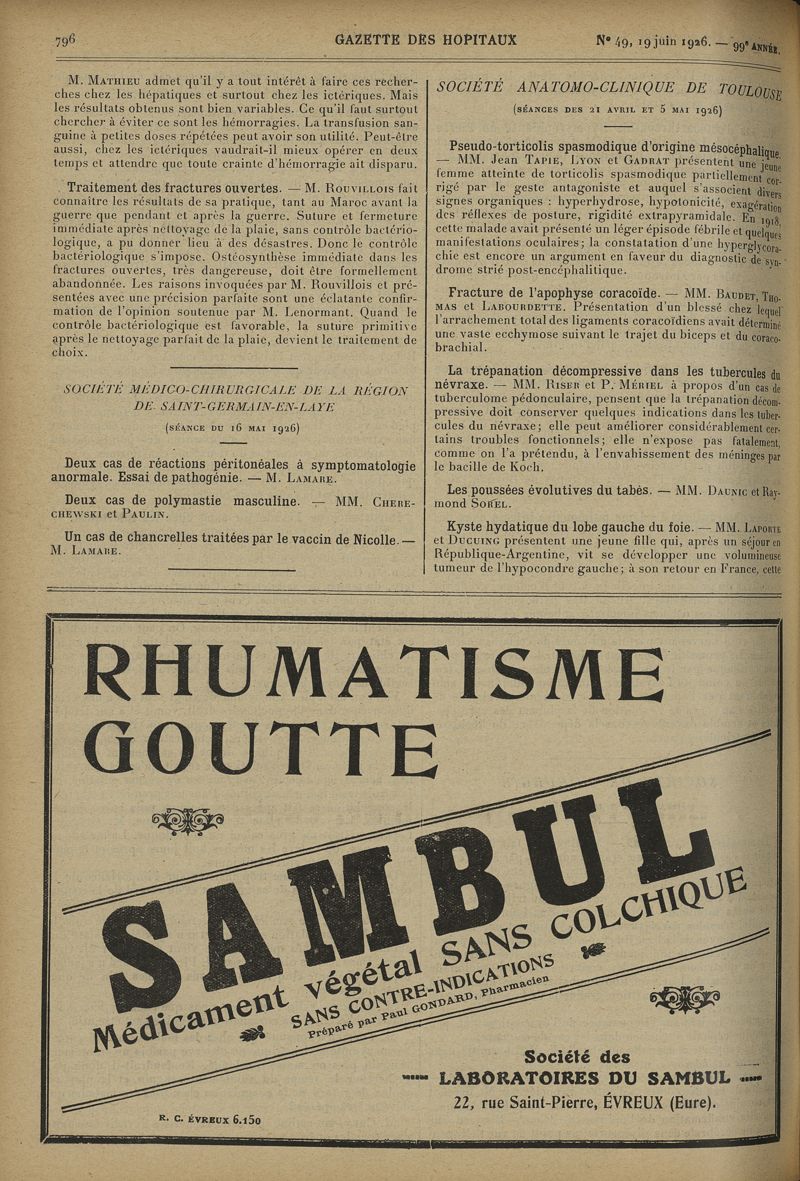 1926, tome 99e année. -