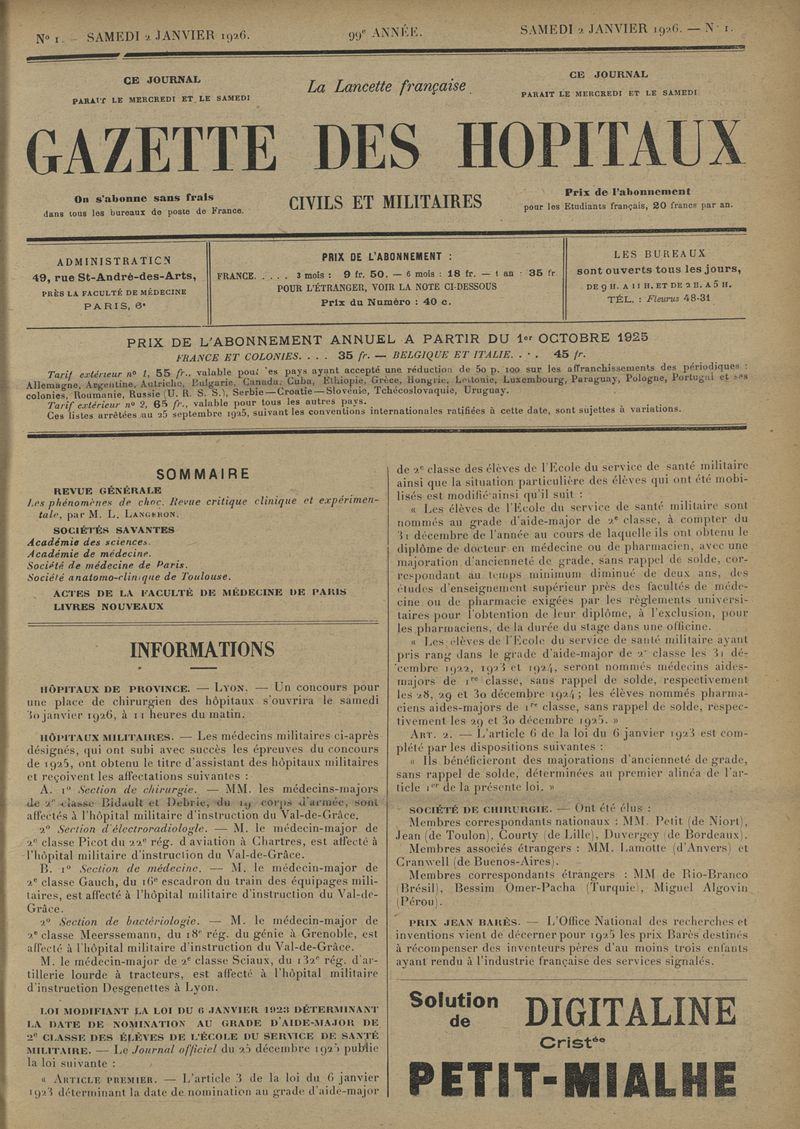 1926, tome 99e année. -