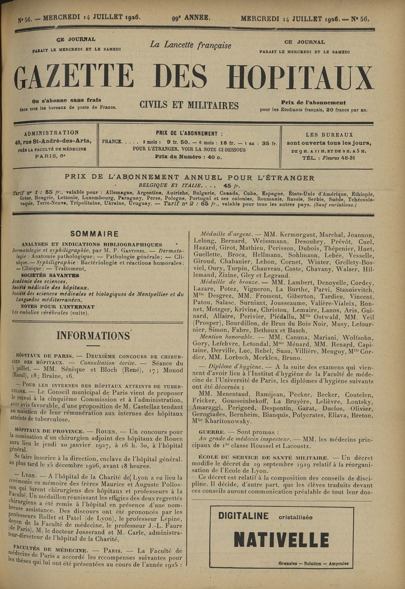 1926, tome 99e année. -