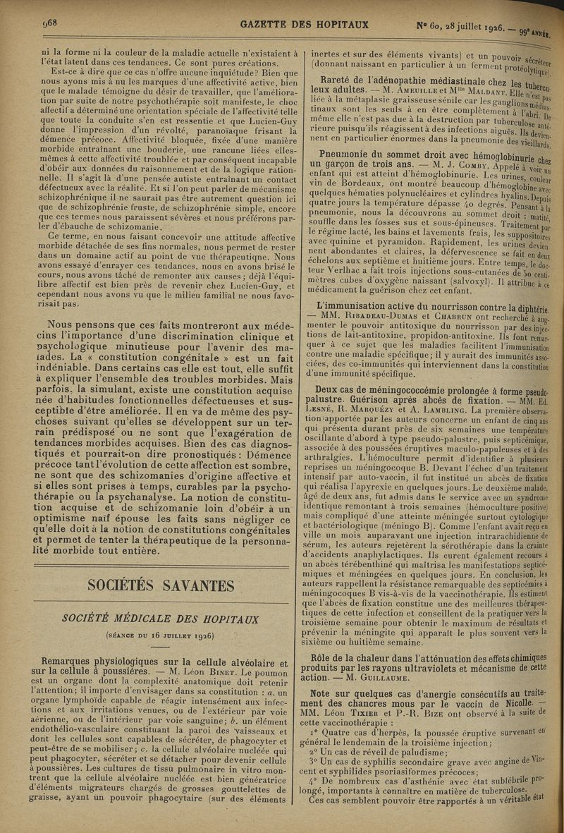 1926, tome 99e année. -