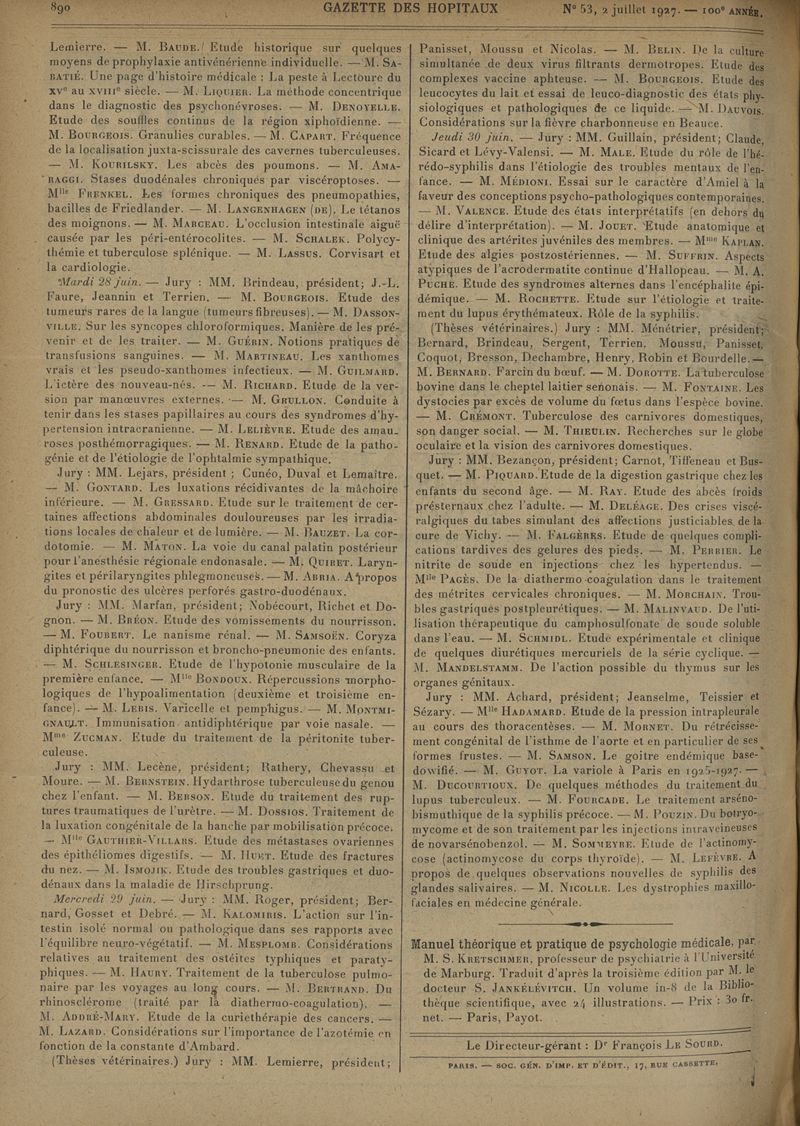 1927, tome 100e année. -