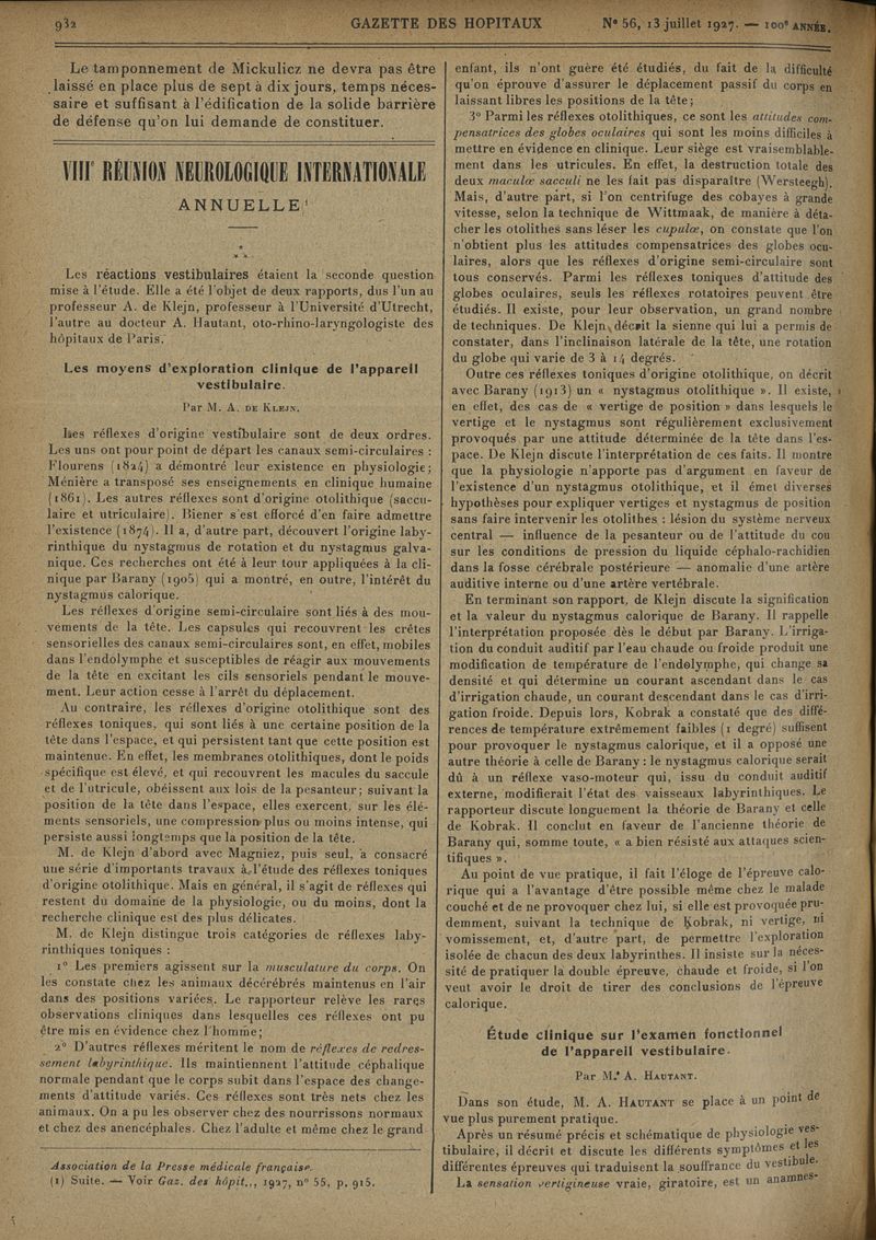1927, tome 100e année. -