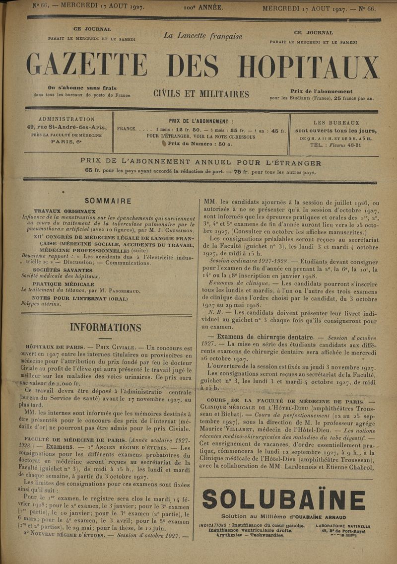 1927, tome 100e année. -