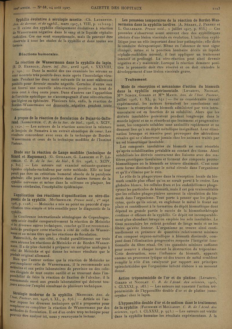 1927, tome 100e année. -