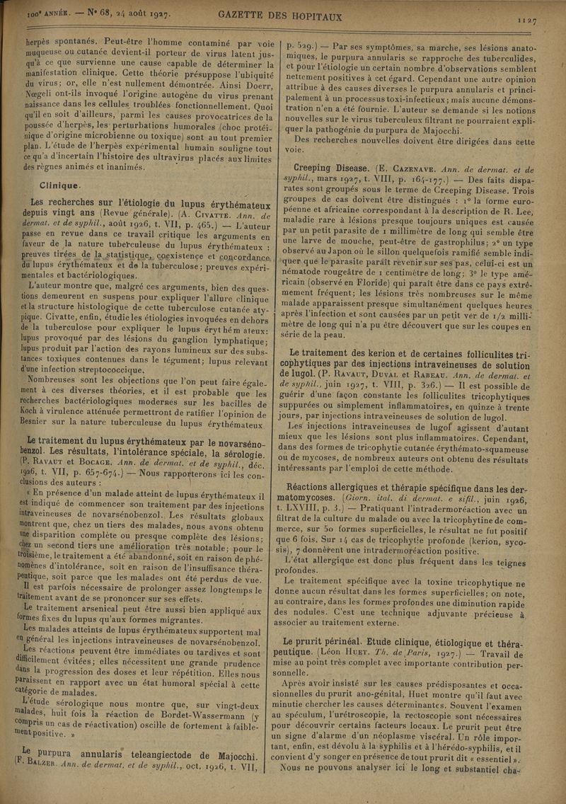 1927, tome 100e année. -