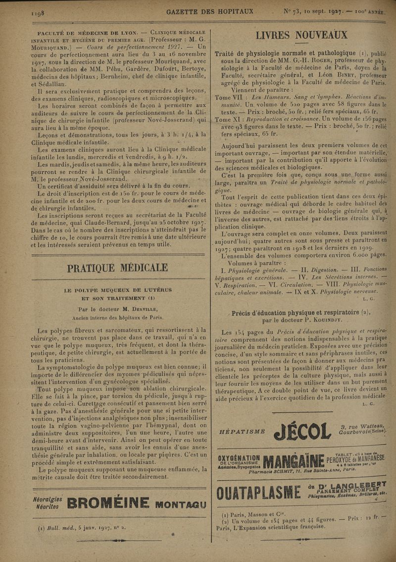 1927, tome 100e année. -
