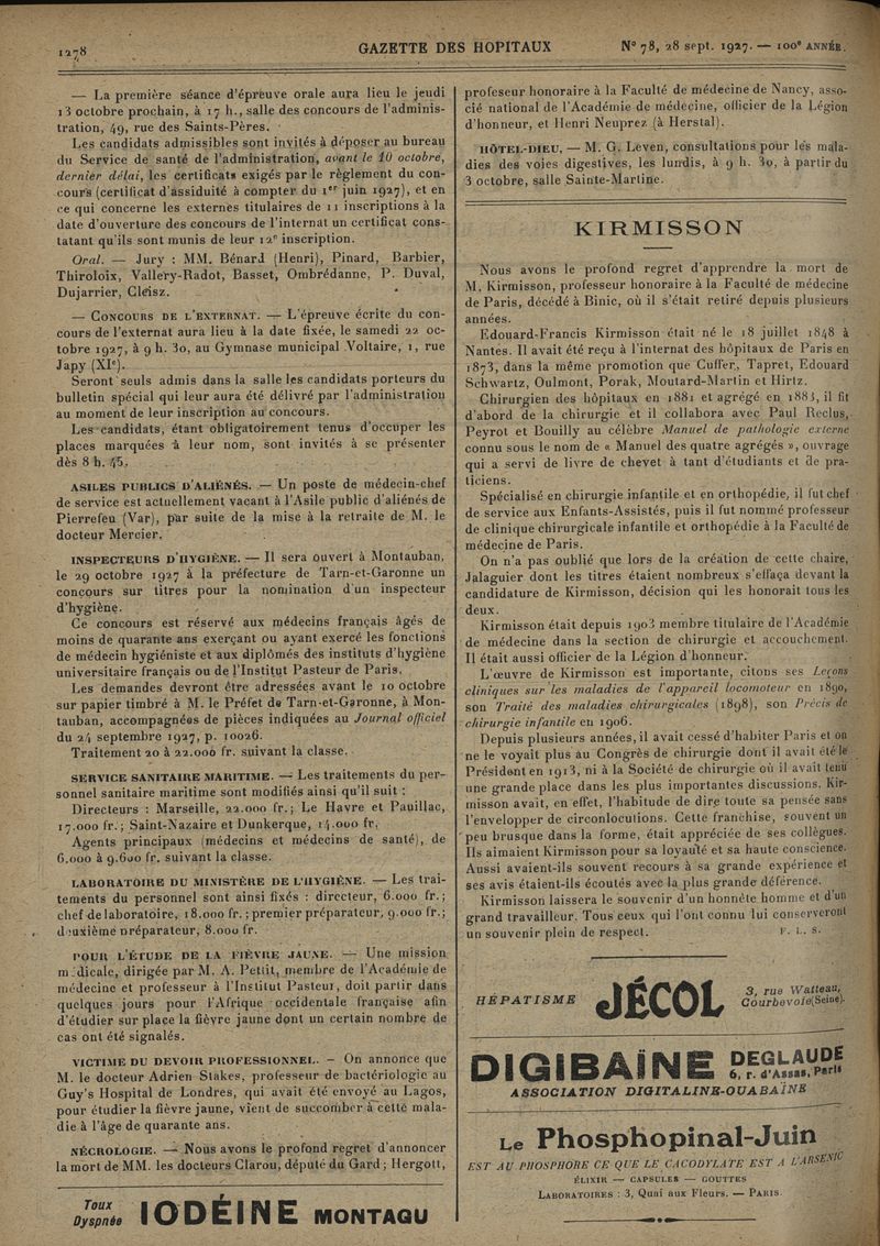 1927, tome 100e année. -