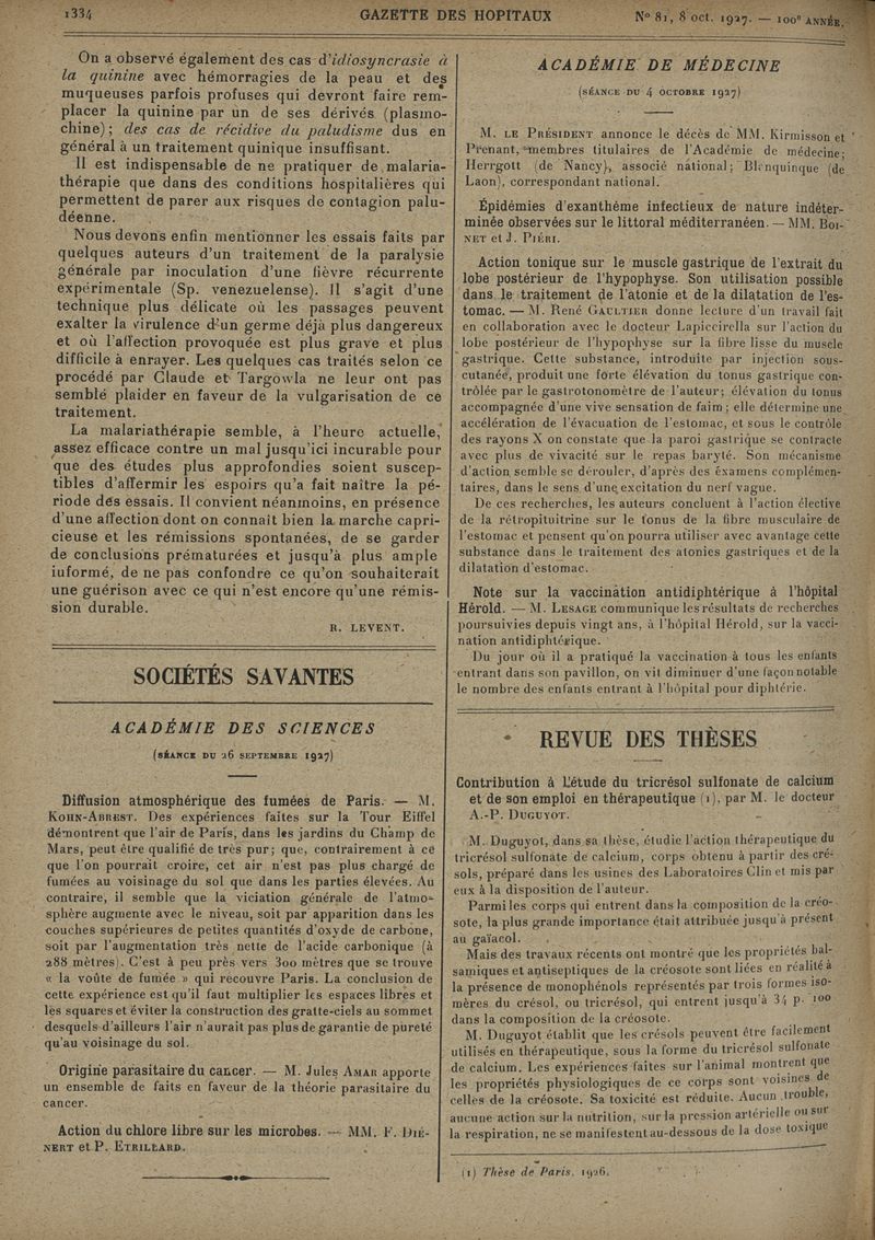 1927, tome 100e année. -