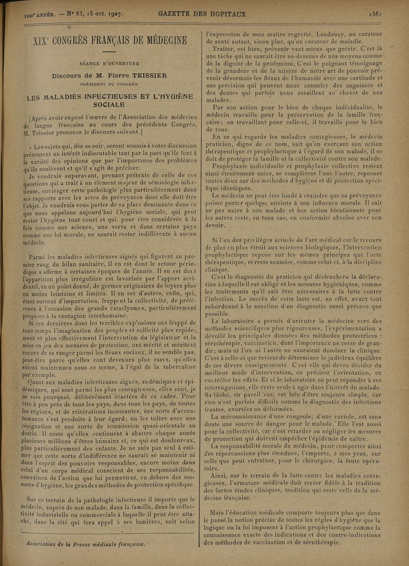 1927, tome 100e année. -