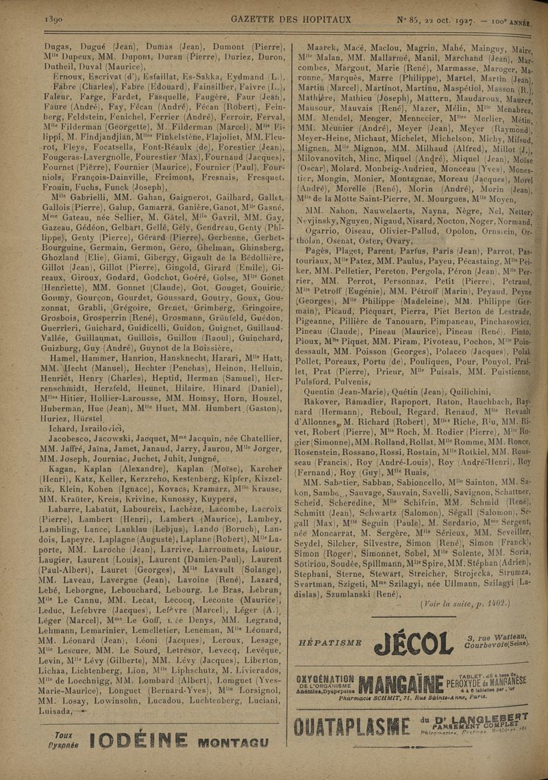 1927, tome 100e année. -