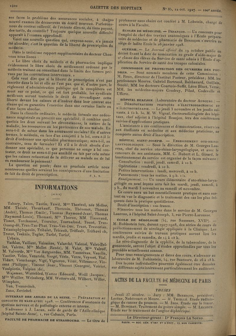 1927, tome 100e année. -
