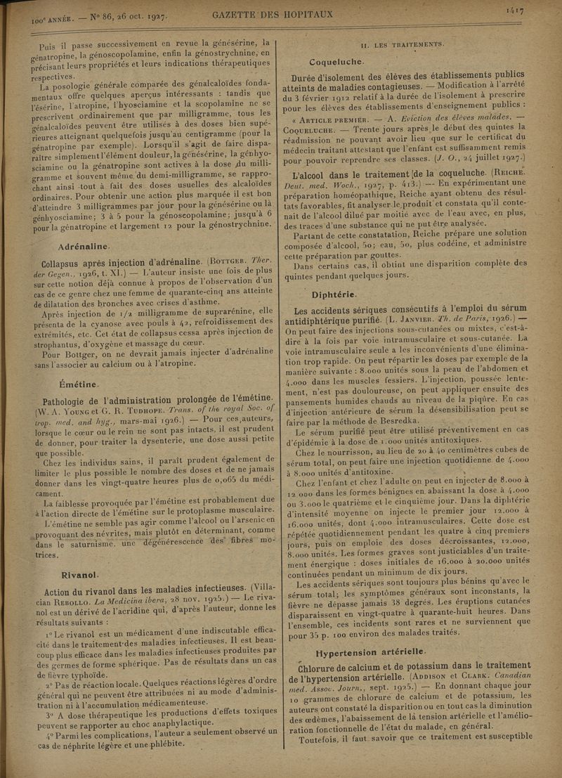 1927, tome 100e année. -