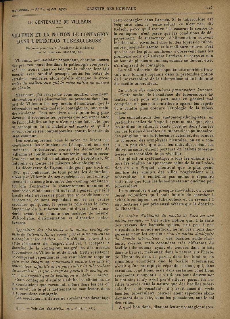 1927, tome 100e année. -