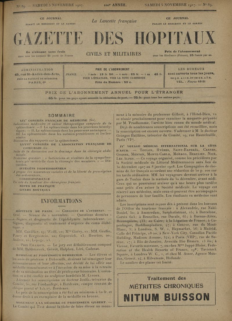 1927, tome 100e année. -