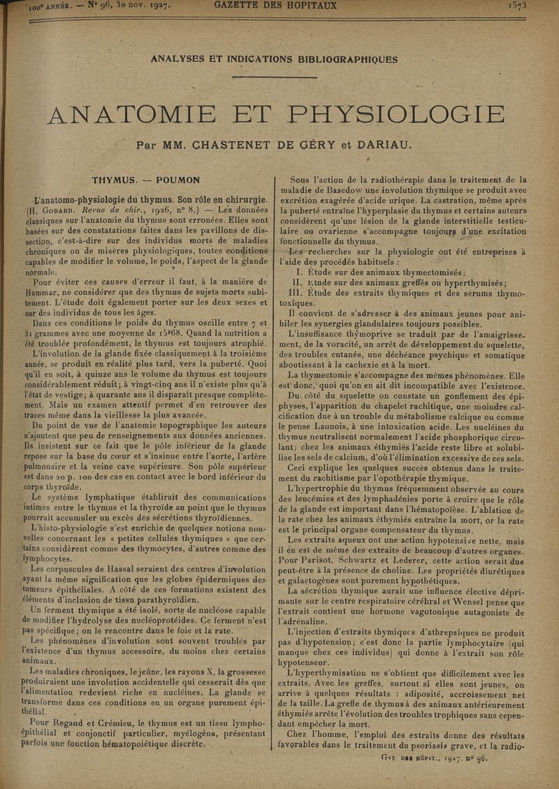 1927, tome 100e année. -