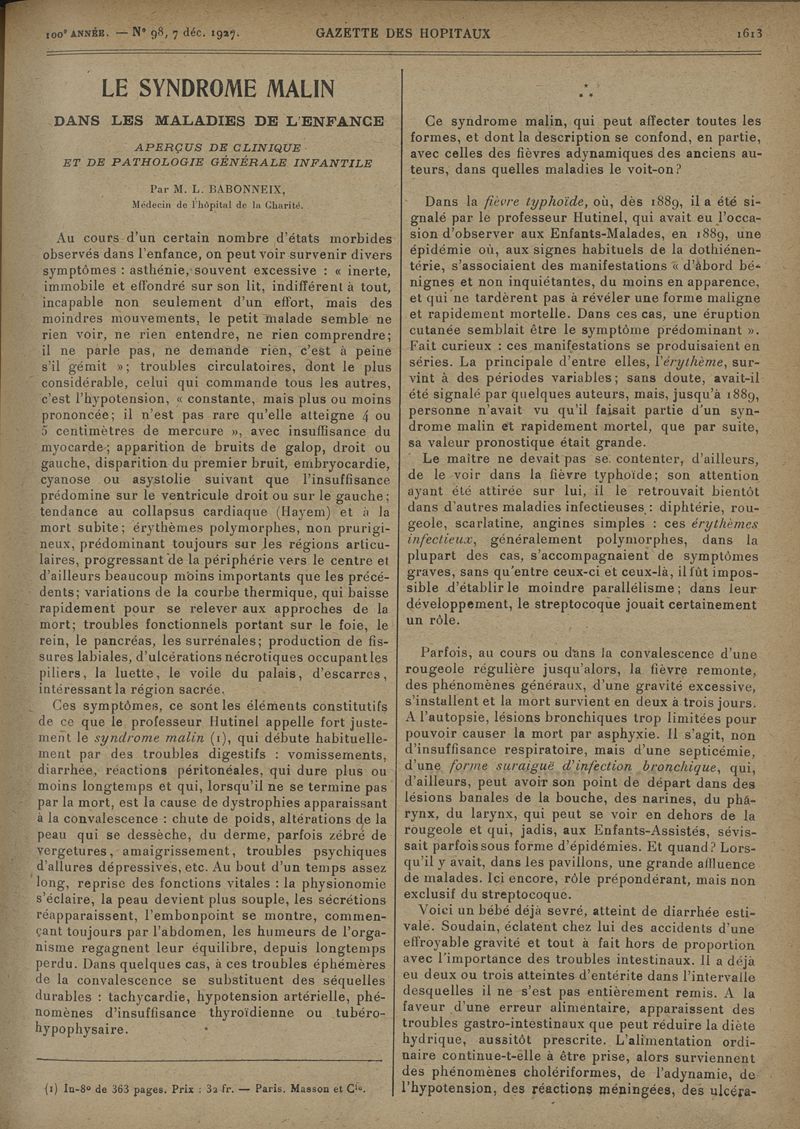 1927, tome 100e année. -