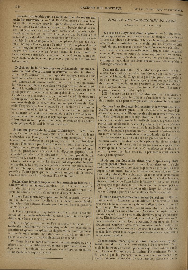 1927, tome 100e année. -