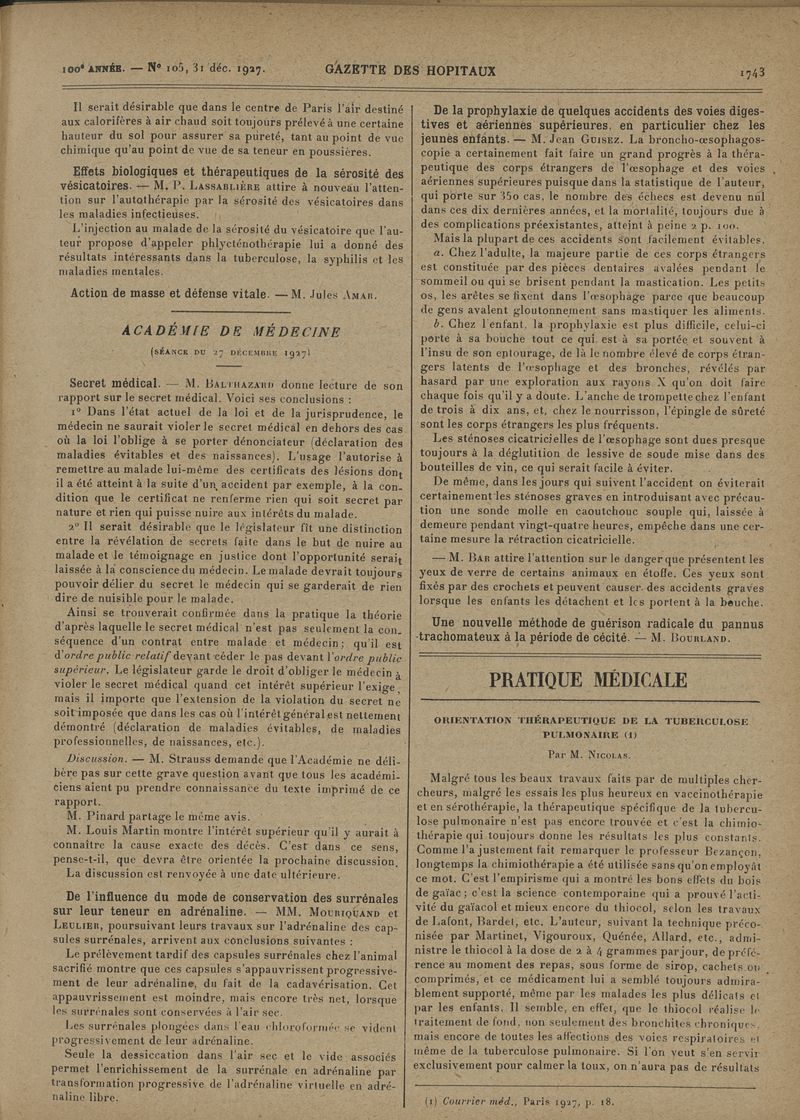1927, tome 100e année. -