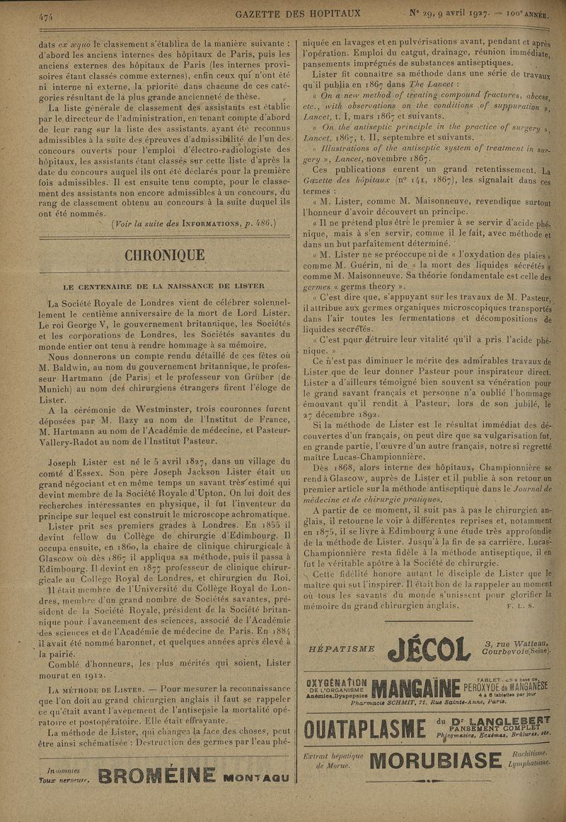 1927, tome 100e année. -