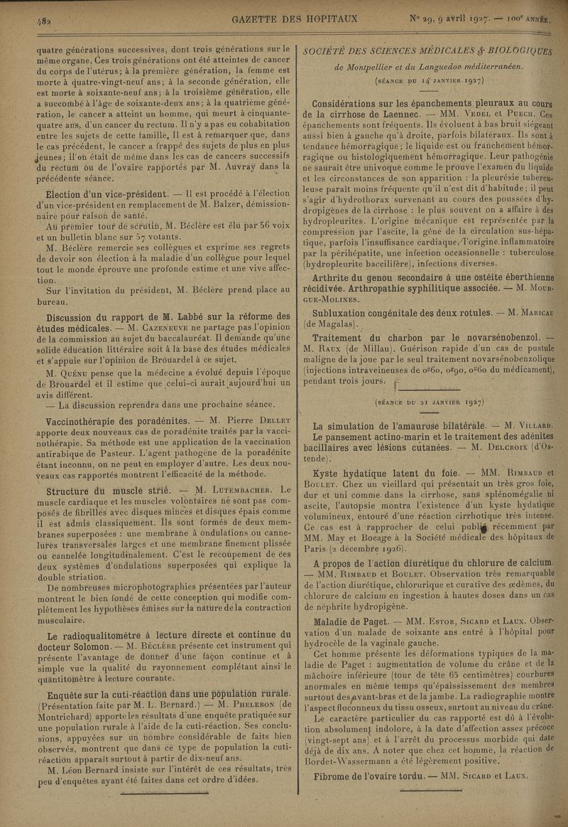 1927, tome 100e année. -