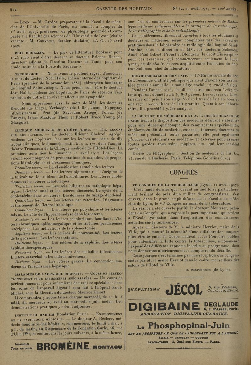 1927, tome 100e année. -