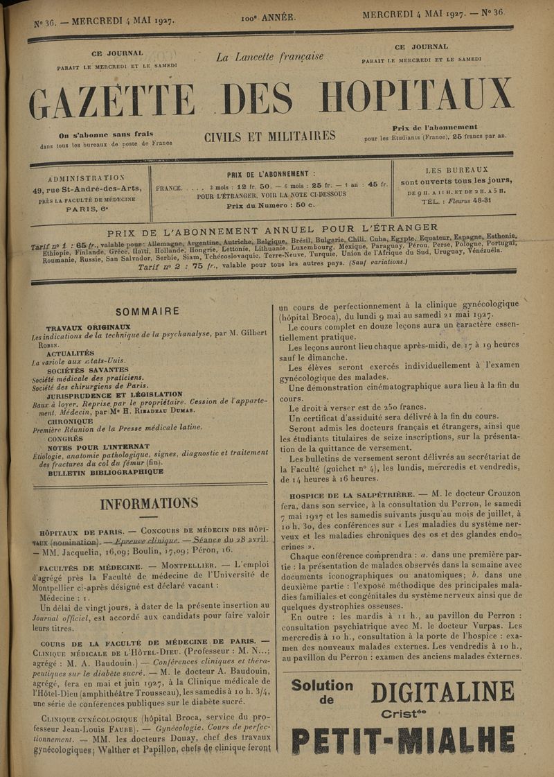 1927, tome 100e année. -