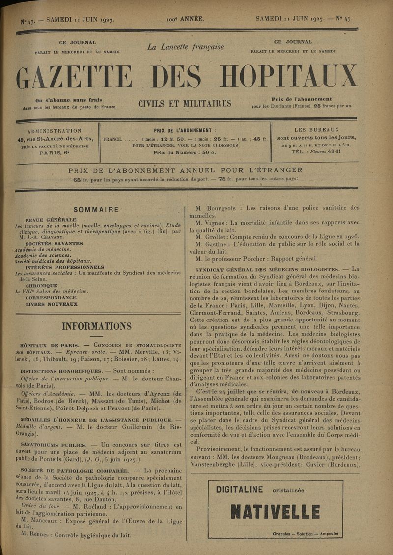 1927, tome 100e année. -