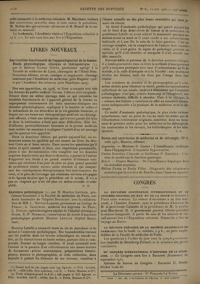 1931, tome 104e année. -
