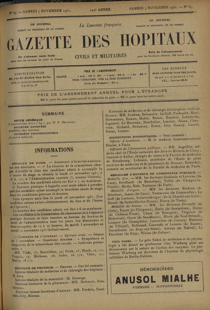 1931, tome 104e année. -