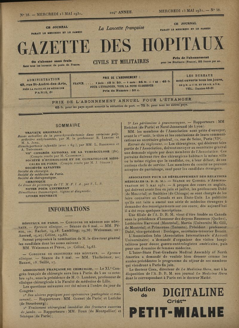 1931, tome 104e année. -