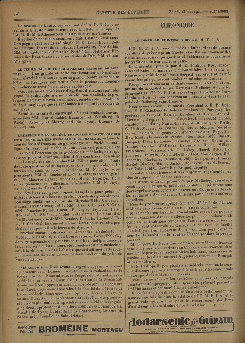 1931, tome 104e année. -