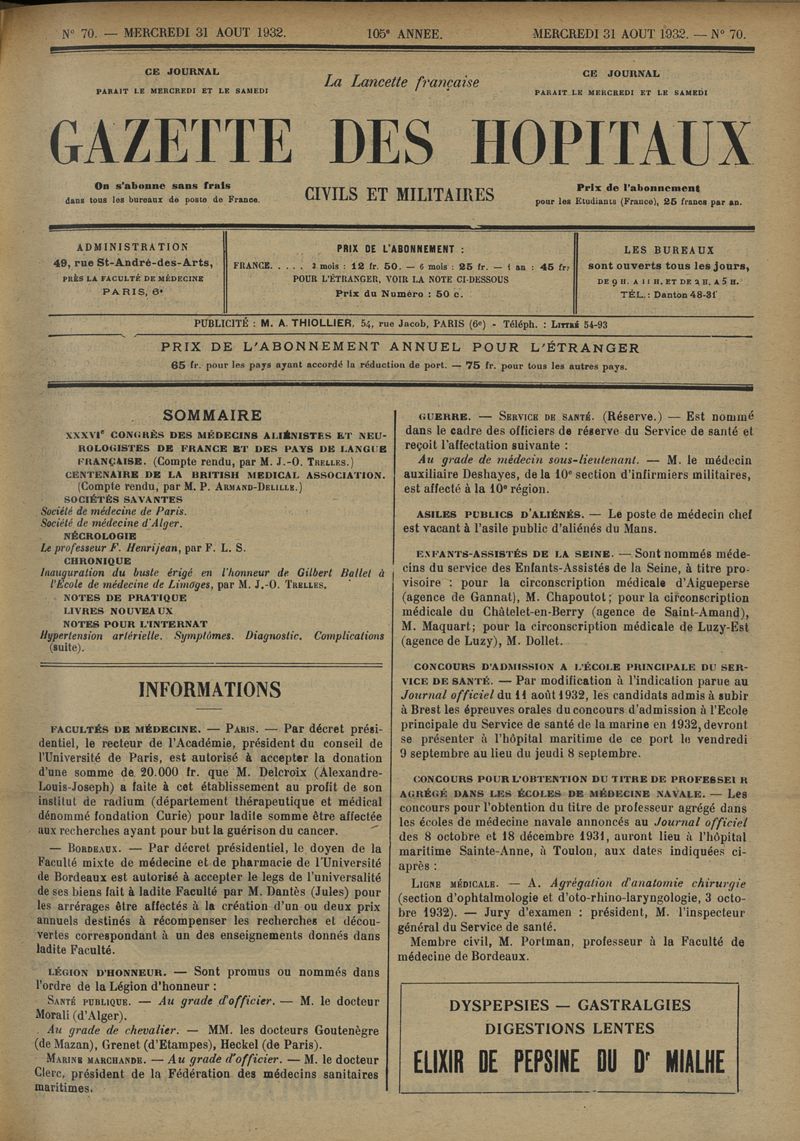 1932, tome 105e année. -