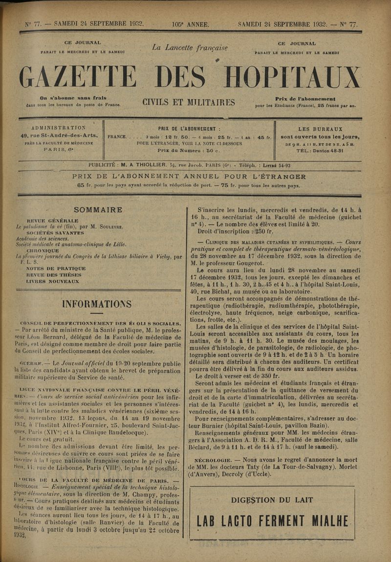 1932, tome 105e année. -