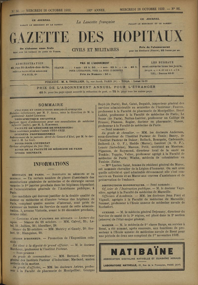 1932, tome 105e année. -
