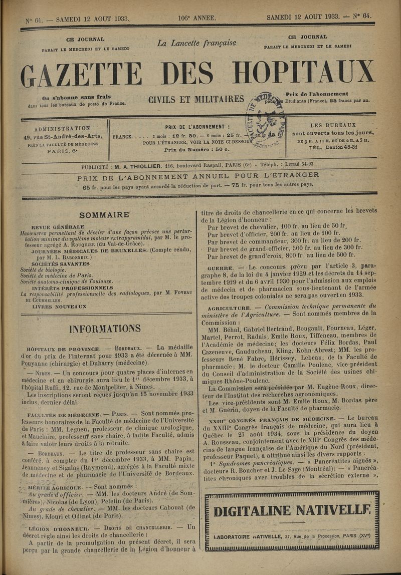 1933, tome 106e année. -