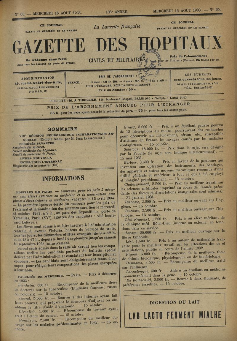 1933, tome 106e année. -