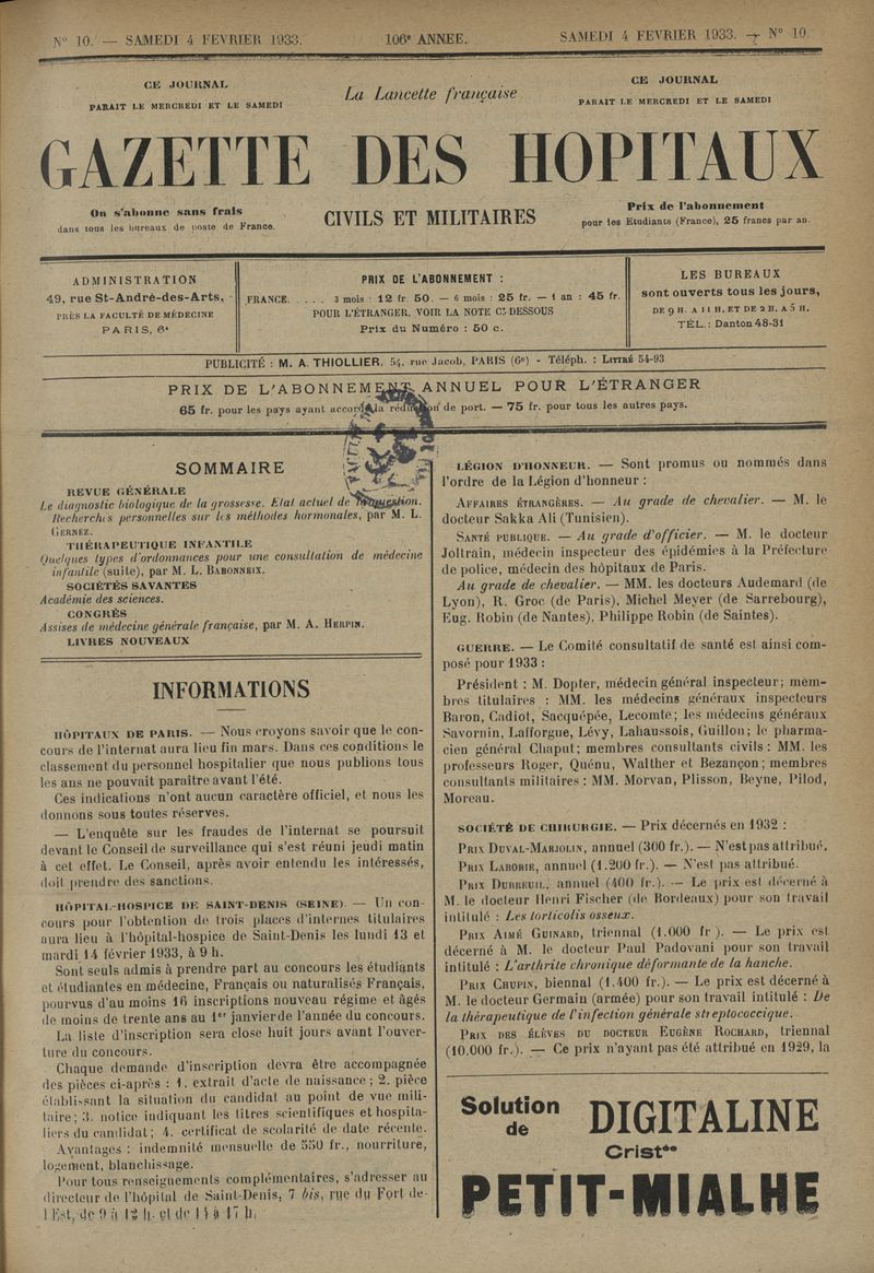 1933, tome 106e année. -
